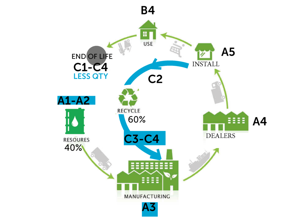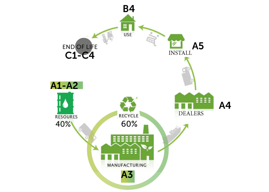 Il valore del -23% di CO2 per quantificare i vantaggi ambientali di GreenPoli deriva da analisi approfondite fatte sul ciclo di vita dei nostri prodotti standard della gamma PoliCarb, ove si evidenzia un beneficio enorme sulle prime fasi della vita delle nostre lastre. Infatti il prodotto composto dal 60% di materiale riciclato tramite la ri-granulazione interna può migliorare i valori di emissione di CO₂ e portare benefici alle fasi A1, A2 e A3 dell'analisi LCA (Life Cycle Assessment), oltre a contribuire alle certificazioni EPD (Environmental Product Declarations).
