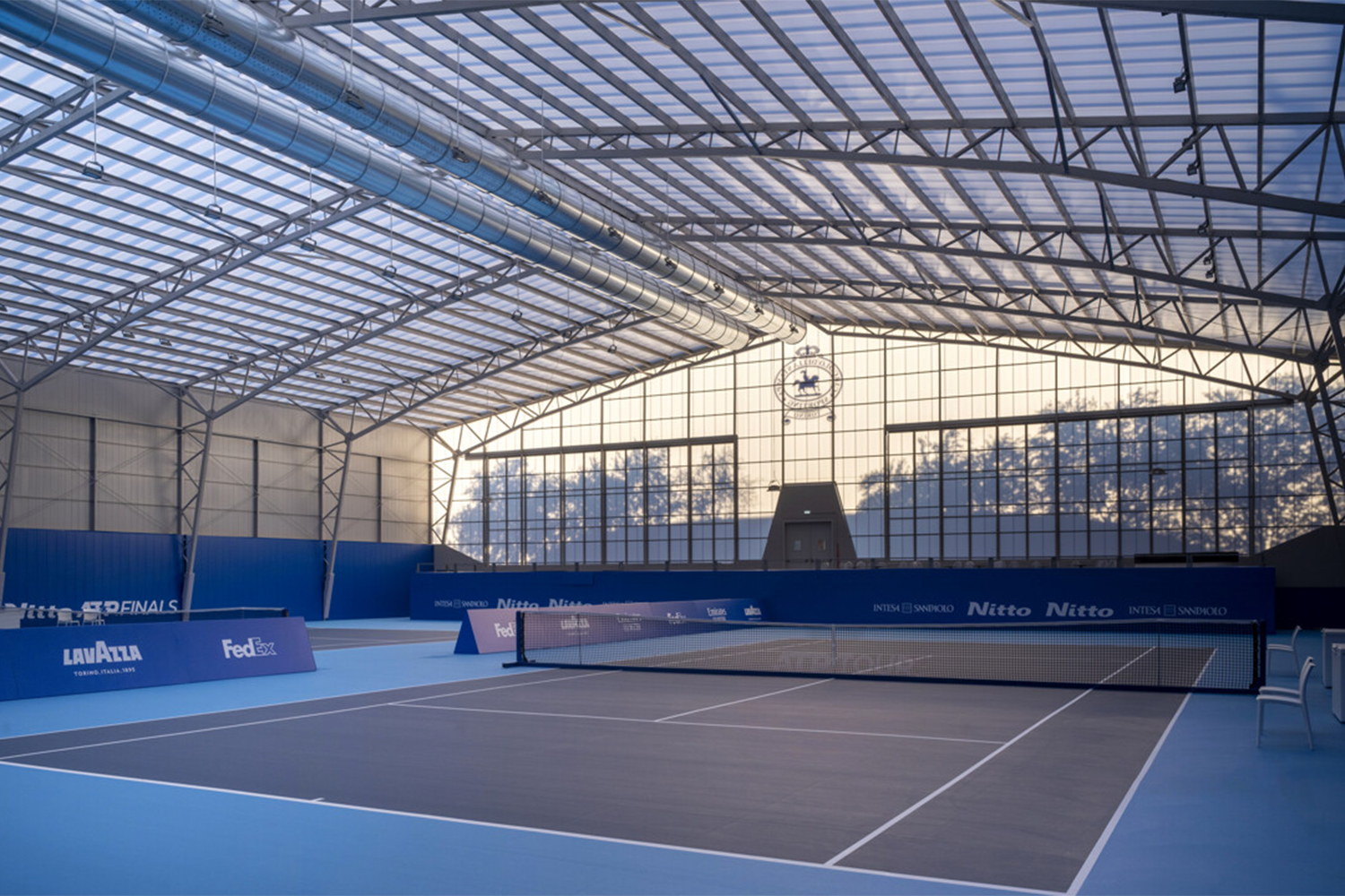 Il centro, utilizzato durante le ATP Finals come sede di allenamento dei migliori tennisti al mondo, integra campi regolamentari, tribune per il pubblico e spazi di servizio completamente riprogettati, confermando il ruolo del policarbonato ArcoPlus® di Dott. Gallina come soluzione efficace per l’architettura sportiva contemporanea.