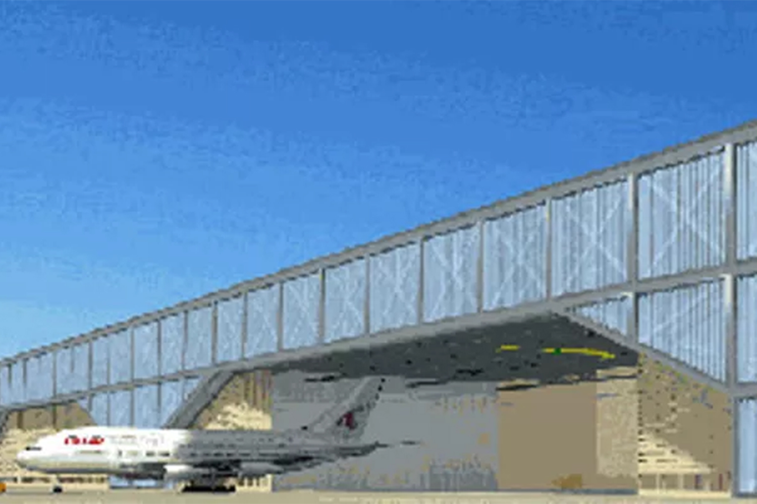 La società Dott. Gallina, con sede a La Loggia, ha fornito i blocchi in policarbonato bicolore per la facciata dell’hangar privato commissionato dall’emiro Hamad bin Khalifa Al Thani a Doha. Oltre 65 container di pannelli traslucidi hanno creato un effetto scenico simile ai flutti del mare, retroilluminato di notte con 8.000 tubi blu al neon.