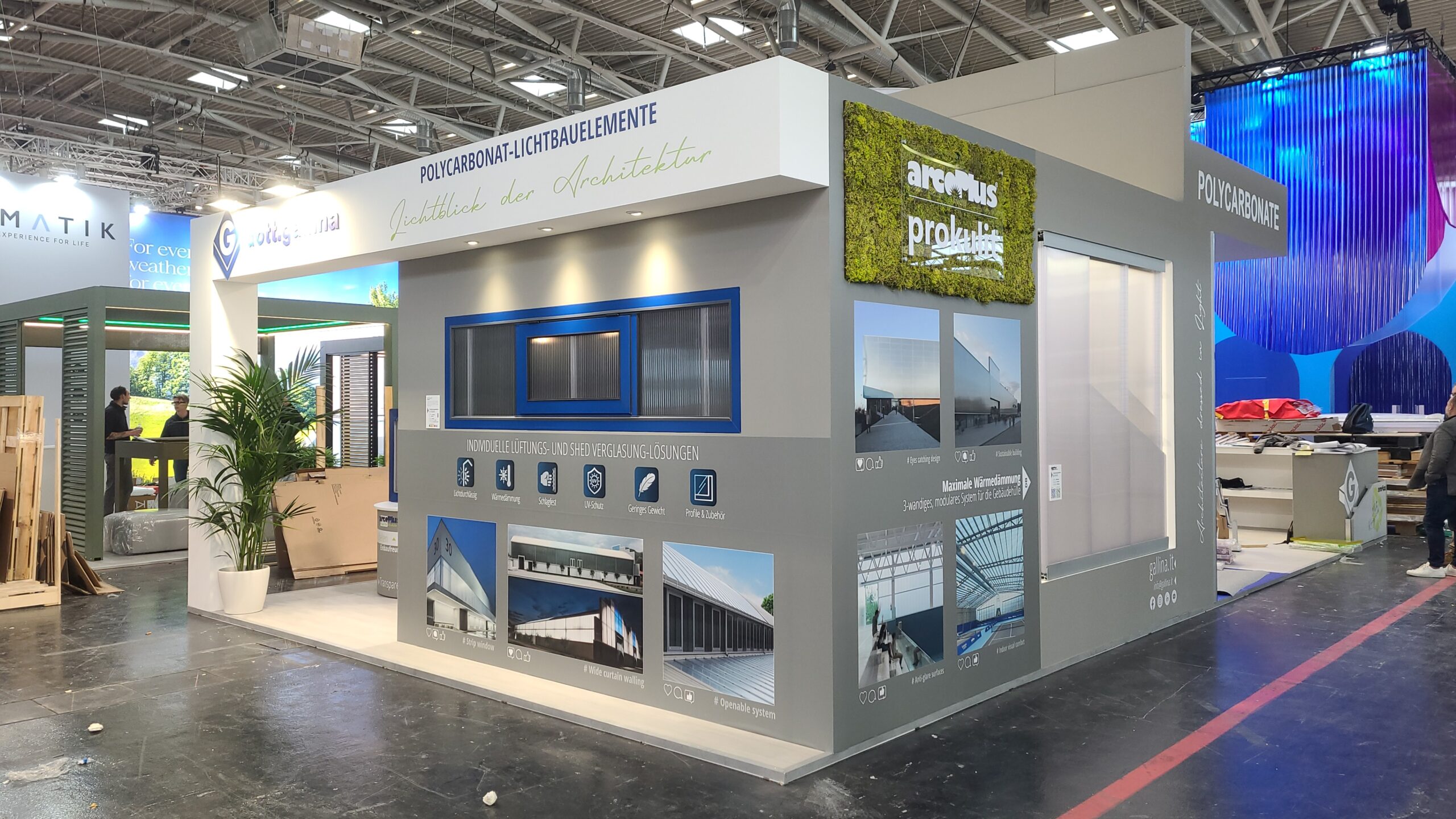 La partecipazione a questa fiera è un appuntamento imprescindibile per la nostra azienda e ci ha offerto l'opportunità di mostrare i nostri prodotti: dal celebre ArcoPlus, impiegato nei progetti architettonici di tutto il mondo, fino al Prokulit e i relativi profili perimetrali e accessori realizzati su misura, prodotto di punta della nostra divisione tedesca, distribuito grazie alla nostra sede Gallina Deutschland.