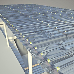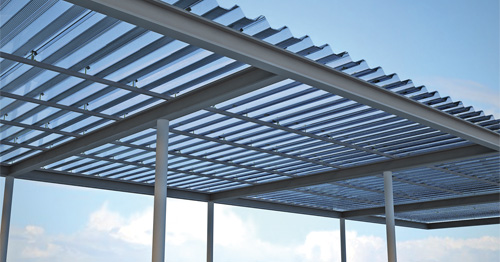 arcoPlus®1000 è un sistema modulare grecato, composto da pannelli di policarbonato alveolare coestruso a tre pareti, con spessore variabile 8÷12mm. Esso è perfettamente sovrapponibile sia longitudinalmente che lateralmente, e consente di ottenere sia coperture continue sia lucernari colmo gronda. Lunghezza massima utile 5.000 mm.