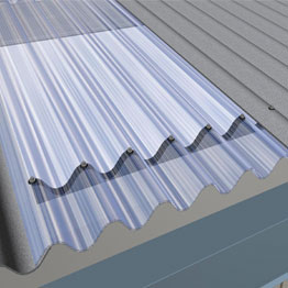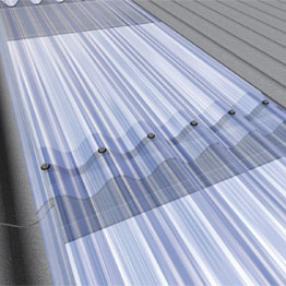 Realizzazione di lucernari ottenuti mediante sovrapposizione laterale degli elementi traslucidi alternati a lastre opache di fibrocemento.