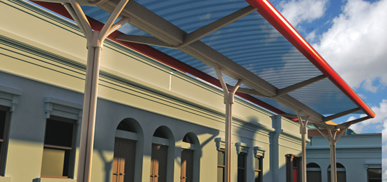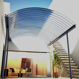 | copertura curva continua in arcoPlusONDA in interno-cortile per protezione parcheggio |